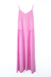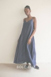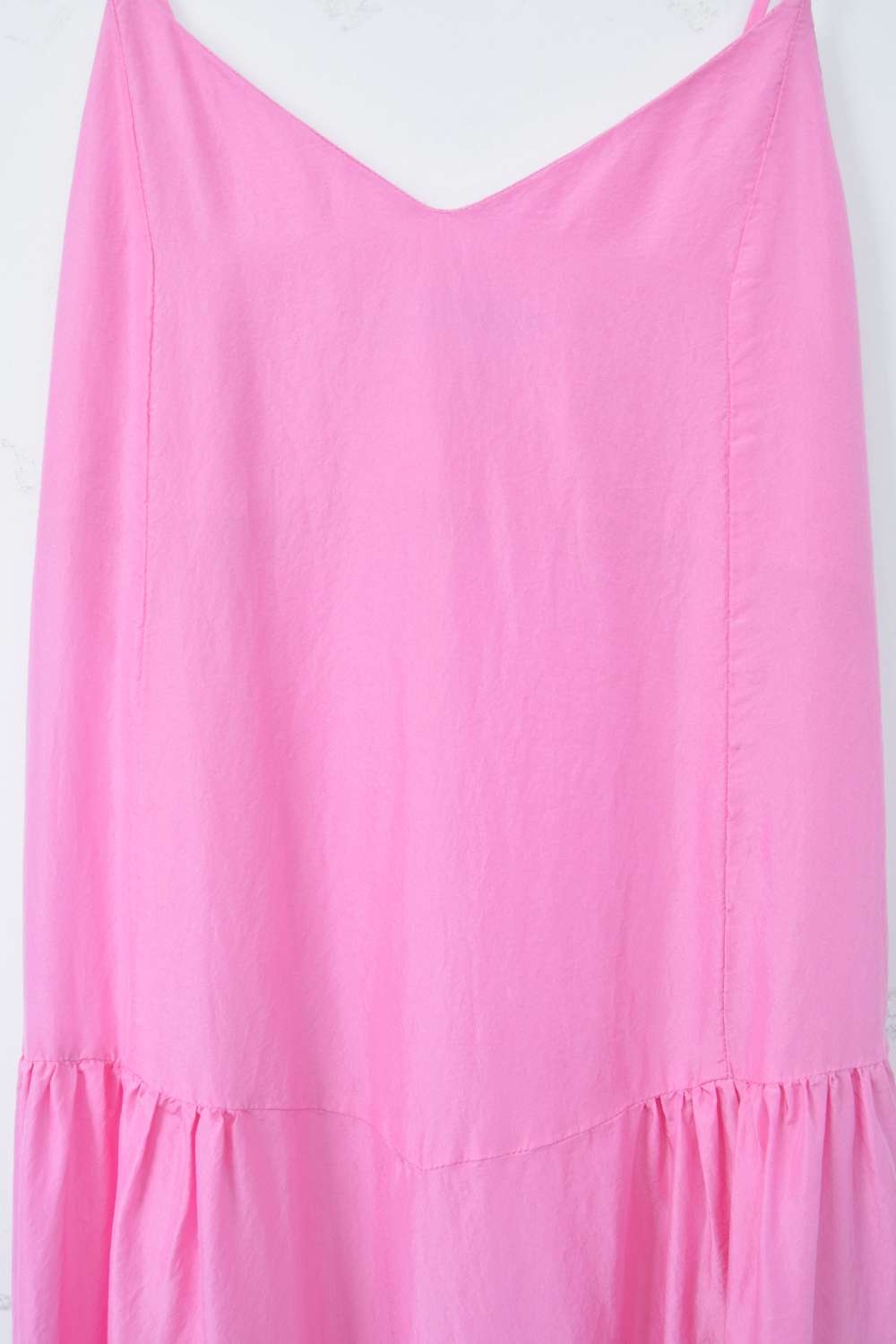 Long dress with thin straps, in 100% silk pongee, fitted in the body and loose in the skirt. A timeless, lightweight and very flattering piece.