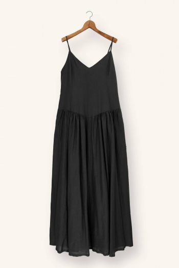 The long Grace dress is crafted from poplin (80% cotton, 20% silk), a structured fabric that gives shape and volume. Lined with lightweight 100% cotton voile to prevent transparency.