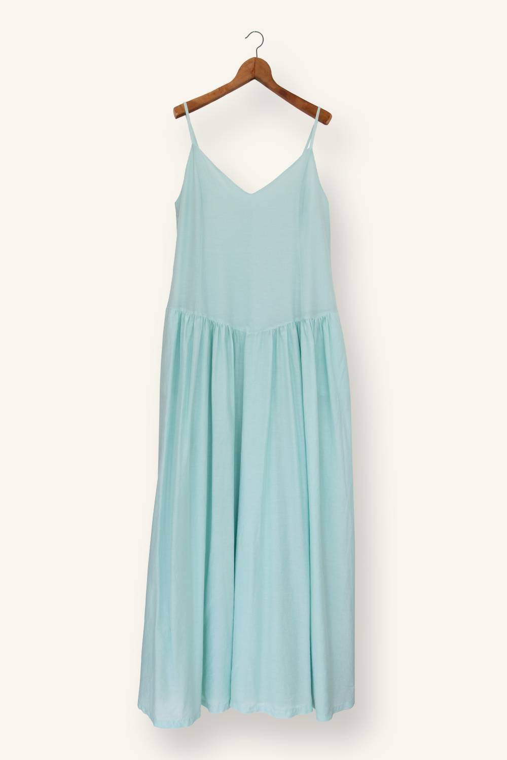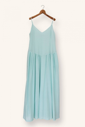The long Grace dress is crafted from poplin (80% cotton, 20% silk), a structured fabric that gives shape and volume. Lined with lightweight 100% cotton voile to prevent transparency.