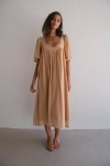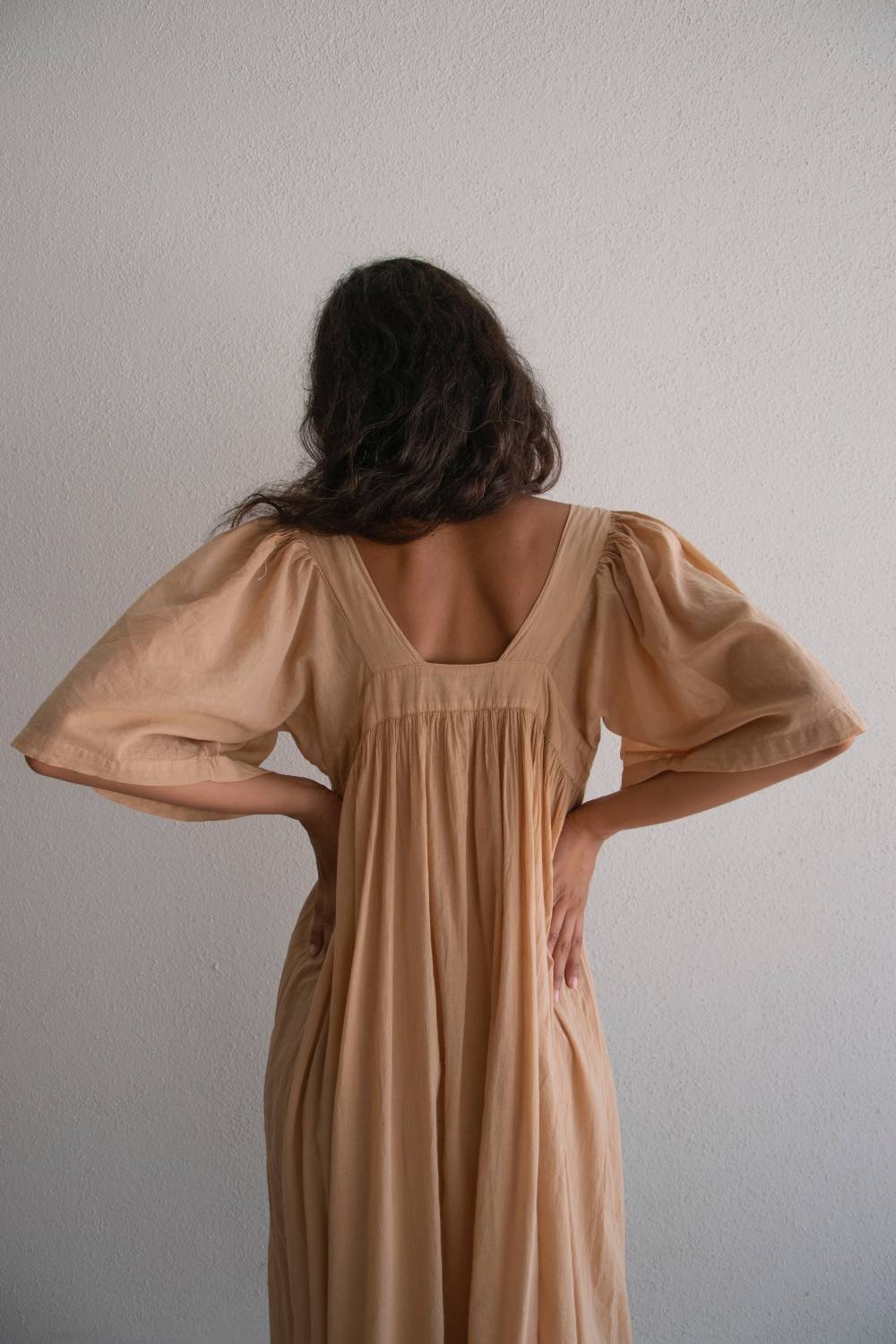 The Jade dress is made from 100% cotton voile, a lightweight, soft and breathable fabric, ideal for warm weather. It features a 100% cotton voile lining, providing additional comfort and coverage while remaining light and airy.