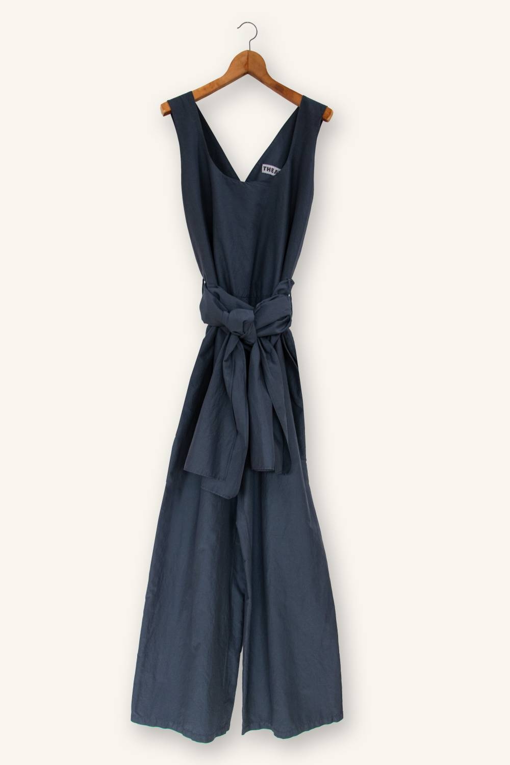 An integrated wrap belt defines the waist, while the wide legs ensure comfort and ease of movement.