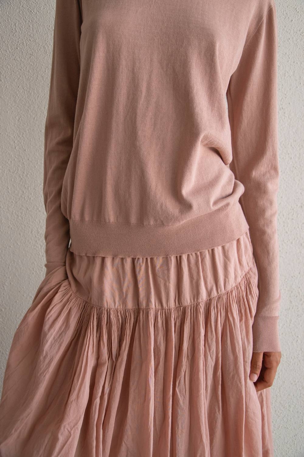 The Bebé crew neck sweater is an essential piece reimagined with softness and simplicity. Made from fine organic cotton, it gently follows the body with a lightweight, breathable texture that feels almost weightless on the skin.