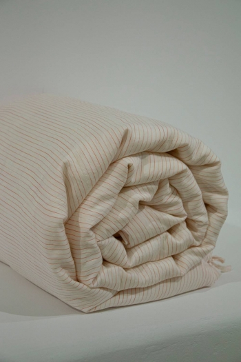 Only the duvet cover in white with red stripes is made in viscose.