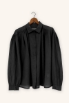 The classic collar and discreet front button closure bring balance to the design, while long sleeves with cuffs add gentle structure. A timeless and airy piece, designed to move effortlessly with the body.