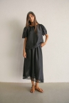 The skirt is lined with 100% cotton voile, ensuring comfort and breathability. An elasticated waistband provides ease and a natural fit, making this piece a timeless wardrobe staple designed to move gracefully with the body.