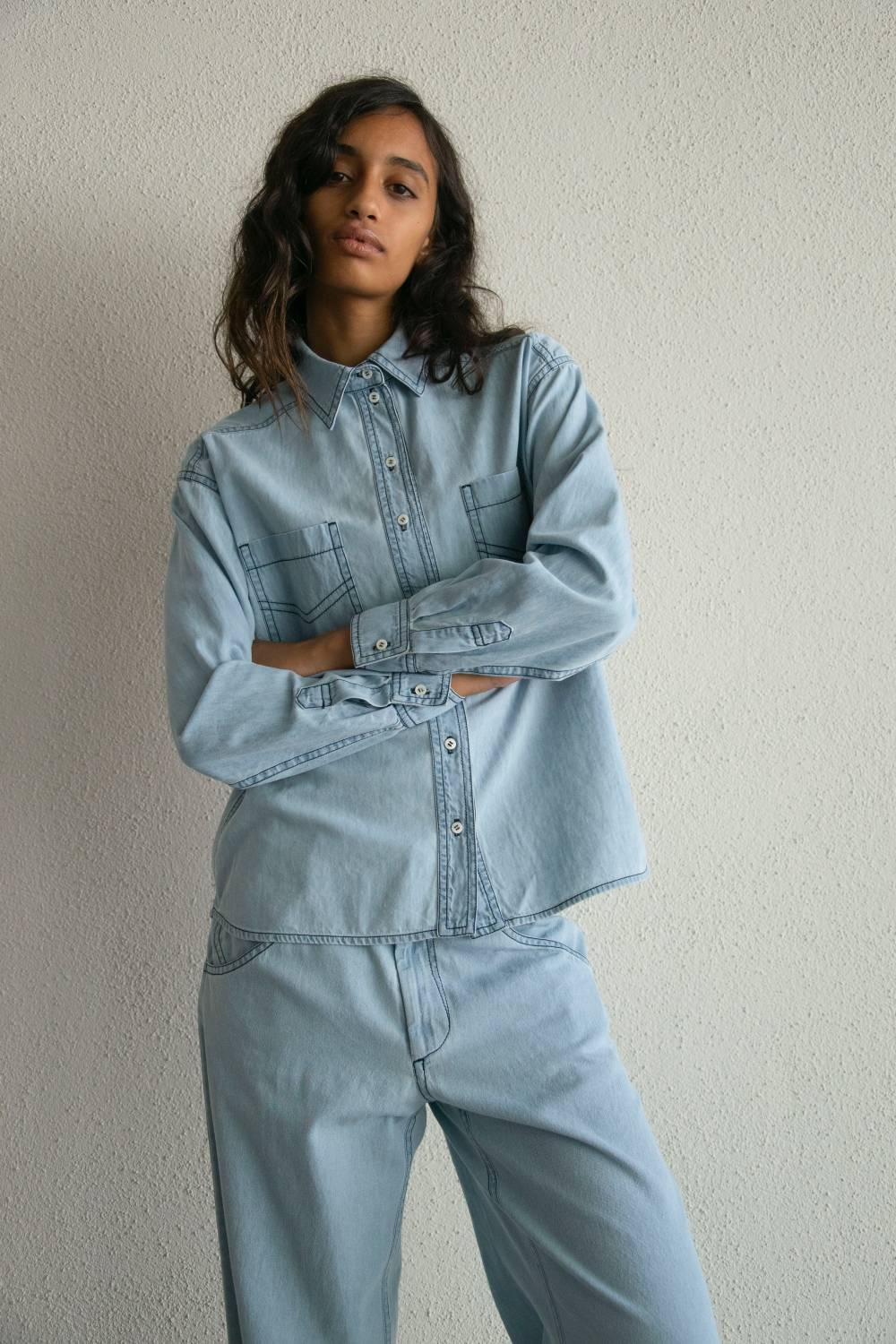 La Love Light Denim en 100% algodón es una camisa que respira ligereza. Su denim suave cae con naturalidad y acompaña el movimiento sin rigidez. Los bolsillos delanteros, marcados por costuras limpias, aportan carácter sin sobrecargar. Su tono azul claro desgastado con sutileza tiene la serenidad de una prenda pensada para durar y para acompañar, tanto sola como en conjunto con tus piezas favoritas.