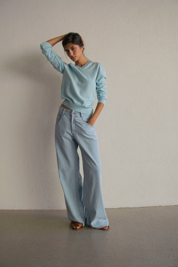 Las modelos llevan una talla S. Reham (jersey rosa palo y blanco vintage) y Aida (jersey azul claro) miden 178cm. Barbara (jersey salmón claro), 180cm.