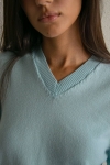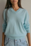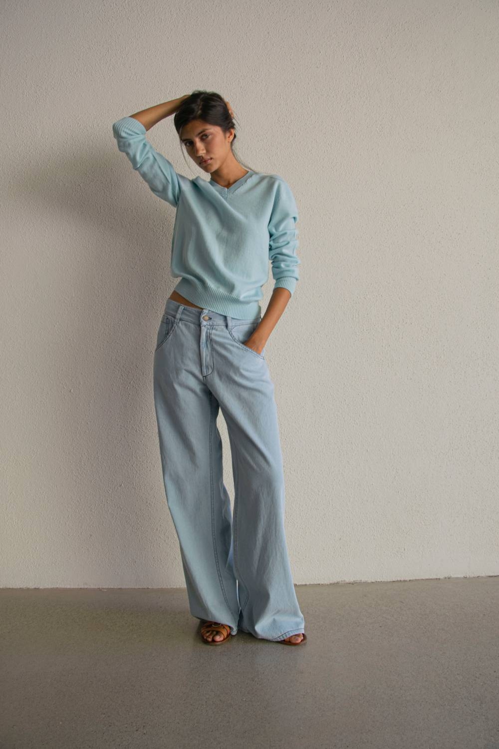 El jersey Saint Anne está tejido en 100% lana merino ligera. Presenta un escote en V con acabado acanalado, mangas largas y una silueta relajada pero ligeramente ajustada. Suave al tacto.